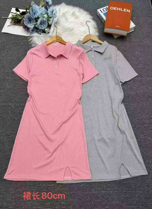 polo领连衣裙 纯欲辣妹修身显瘦性感开叉短袖包臀裙 414条 2-5码 分货➕1 独立包装 大货粉色为主, (货号322#30)