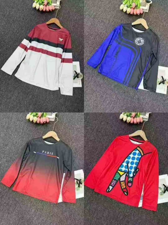 2.9清跨境外贸童壮印花长袖男女款T恤,大版宽松型后领...