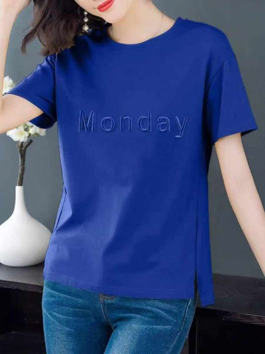 女装宽松刺绣字母时尚百搭纯棉短袖 数量846件 码数M--3XL 五个颜色 侧边开叉 独立包装 货品干净整齐