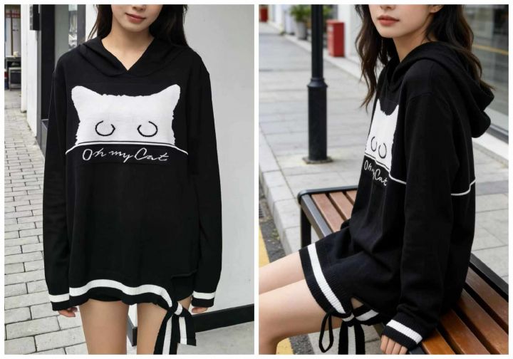 春秋季新款品牌原单设计款卡通提花宽松连帽针织套头毛衣,独立包装带吊牌,...
