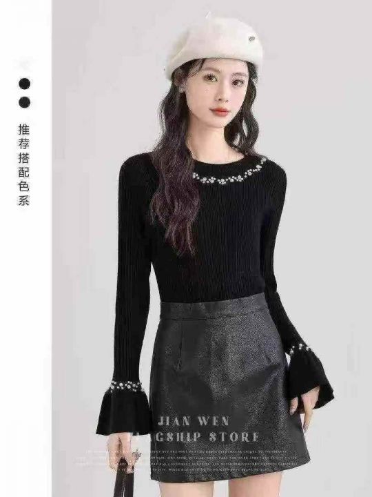 法式名媛风喇叭袖钉珠打底衫,130件,1-4码,独立包装...