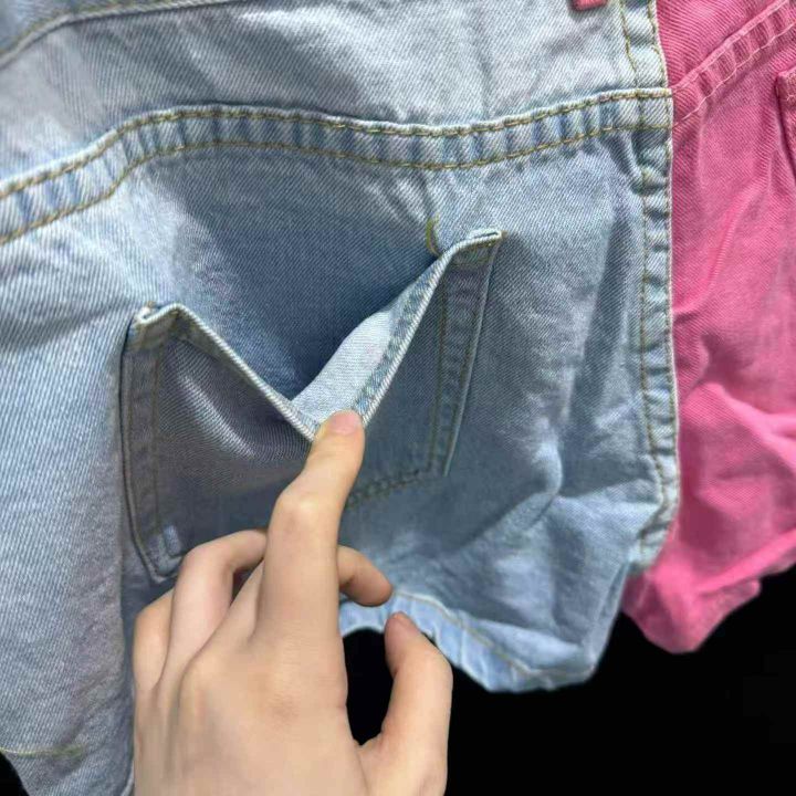 英国时尚品牌golddigga拼色粉蓝牛仔短裤