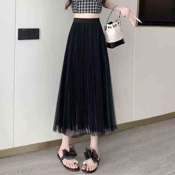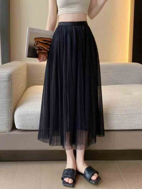 4.5清300件双层网纱半身裙百褶裙a字裙高腰显瘦百搭仙...