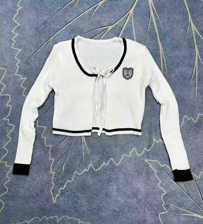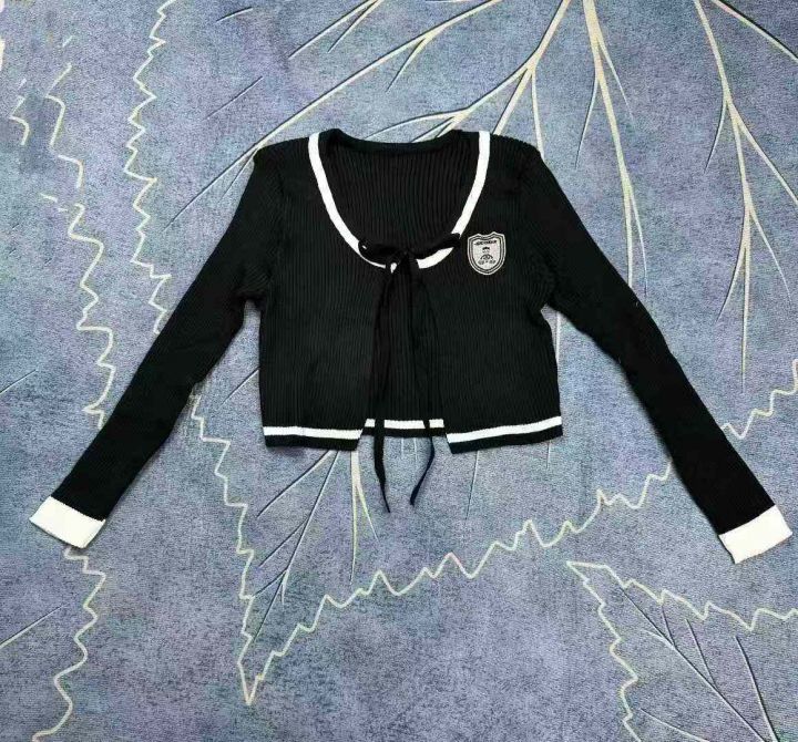 韩系短款针织外套女设计感系带学院风外搭上衣,独立包装,420件,清5.8,分➕0.5