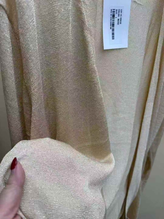 品牌原单正品,特殊工艺金丝面料,长款开衫,单款杏色,数量60件左右,码数ML,独立包装吊牌