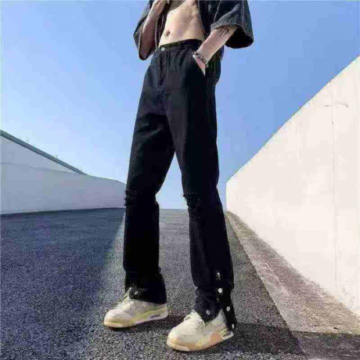 ☕️夏季黑色破洞牛仔裤男欧美高街拉链直筒裤潮牌阔腿...