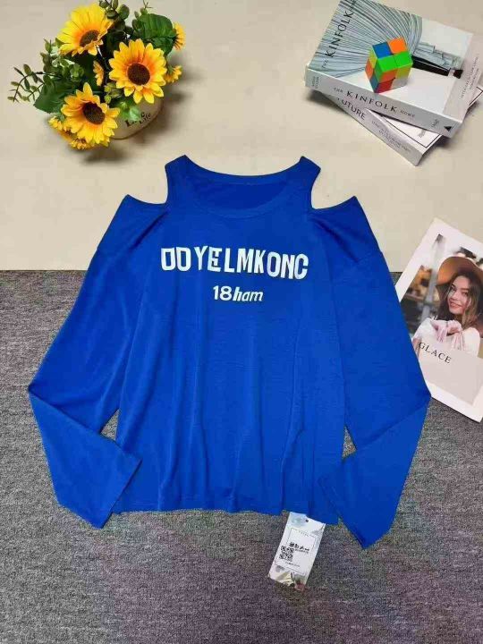 ❄️秋季设计感网红款露肩镂空字母印花长袖上衣休闲打底衫,单款单色,品质...
