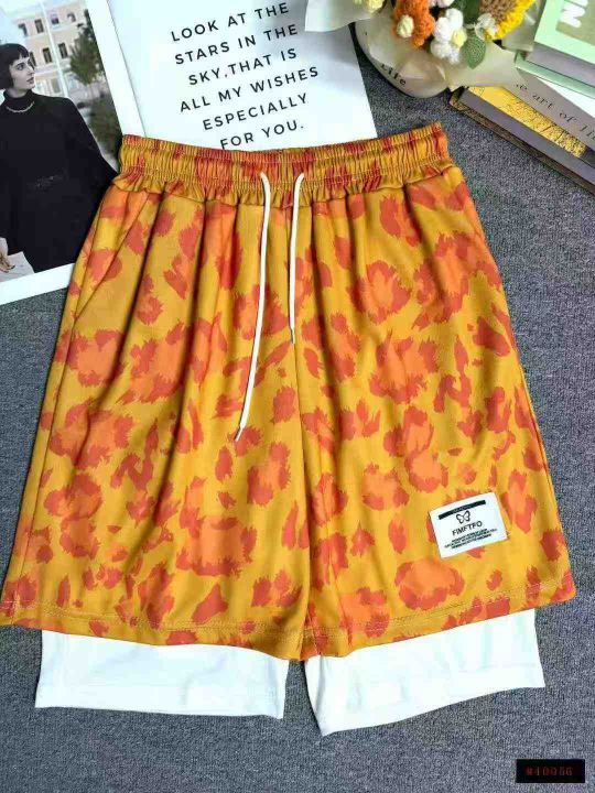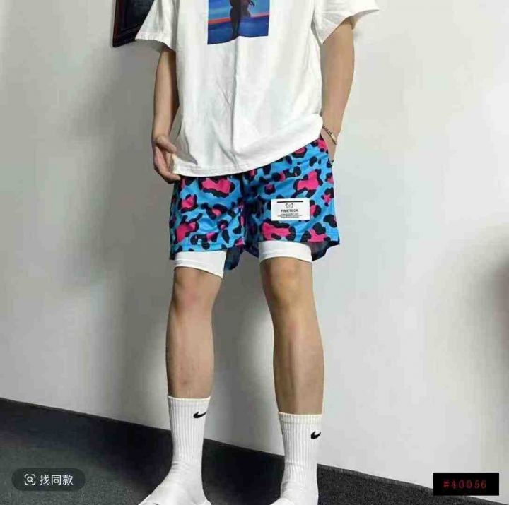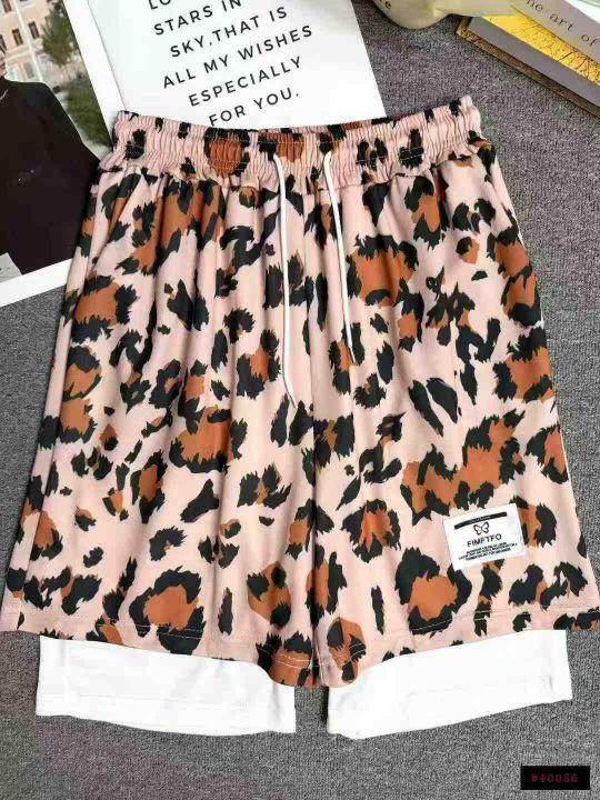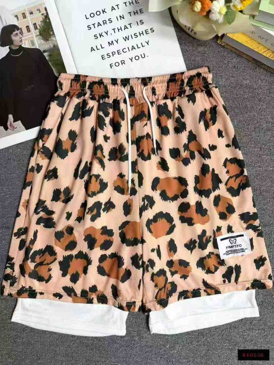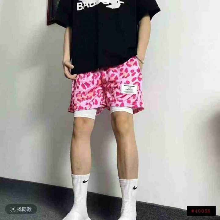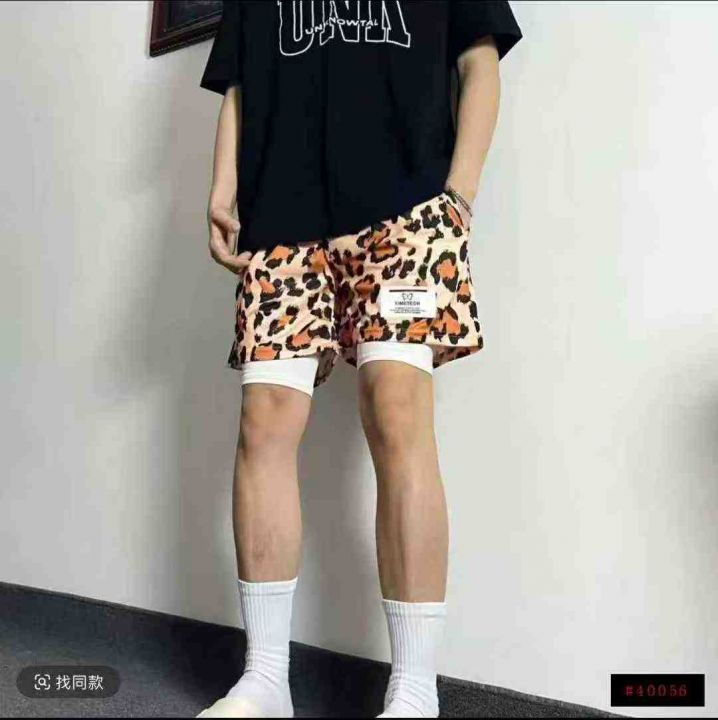 全清5.8分货+0.5男士美式豹纹短裤假两件篮球裤运动透...