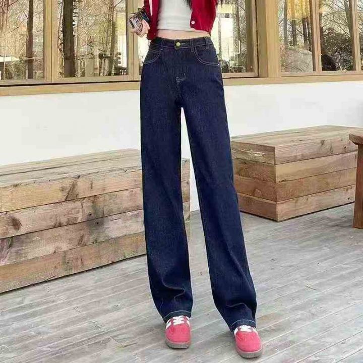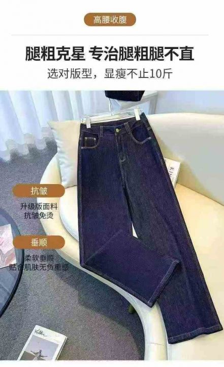 新款宽松百搭显瘦高腰窄版女款直筒裤子,整款2色(杏色...