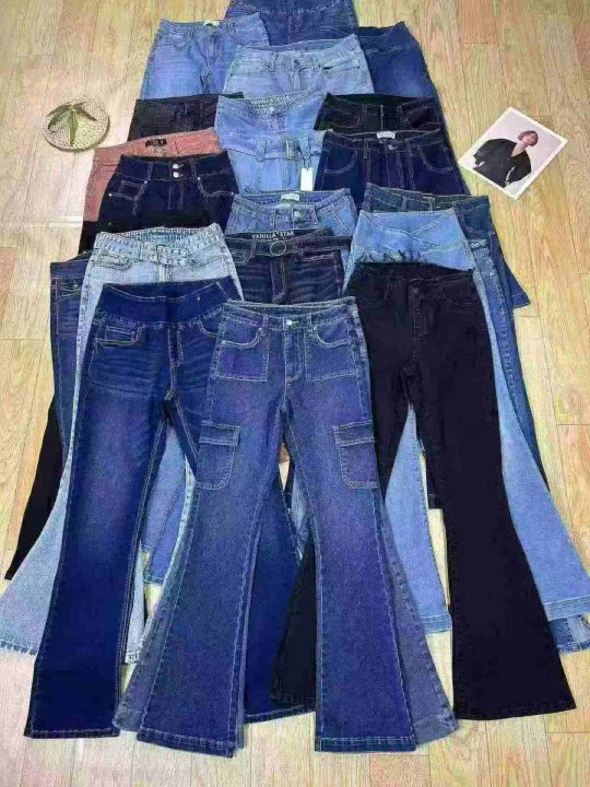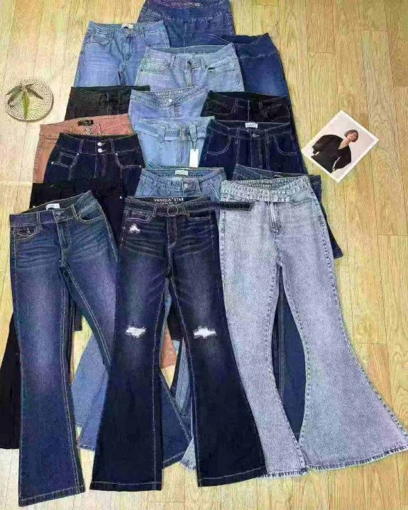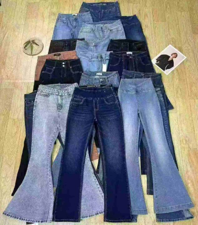 弹力高腰微喇叭牛仔裤 修身款水洗棉长裤,数量1590条,尺码s-3XL码,独立包装已拆除,面料舒适柔软 四面高弹蓝色系列款,低价批发12.9秒杀,