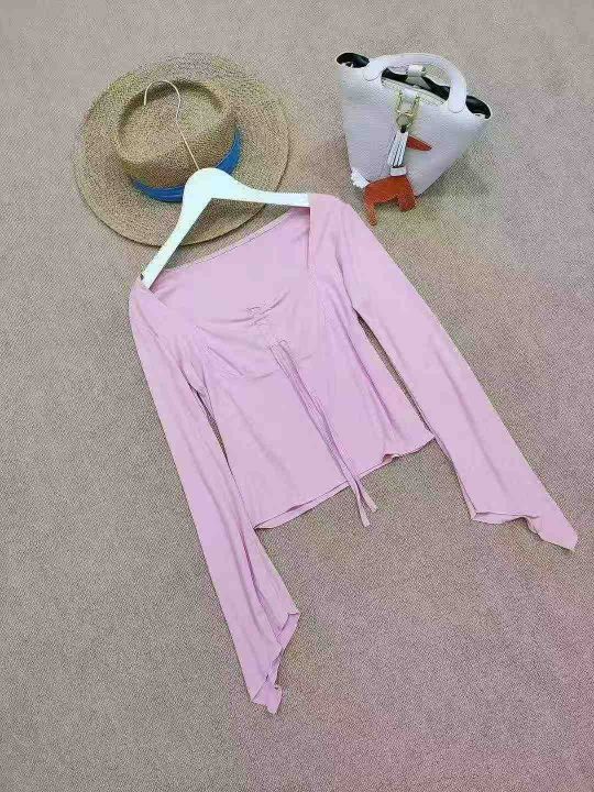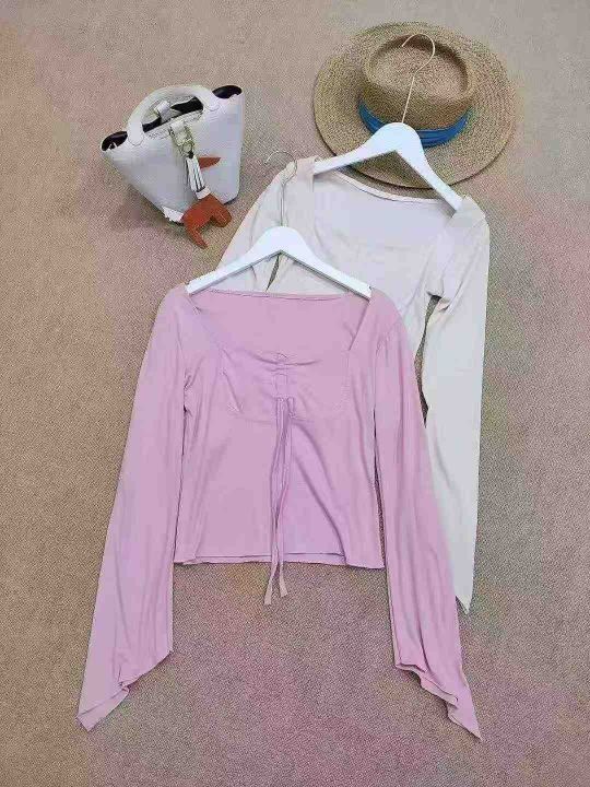 [月亮]:纯欲系带不规则袖口辣妹长袖上衣