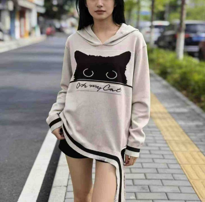 春秋季新款品牌原单设计款卡通提花宽松连帽针织套头毛衣,独立包装带吊牌,均码面料柔软舒适有弹力,512件,全清6.9元超低价秒杀!分货加一!