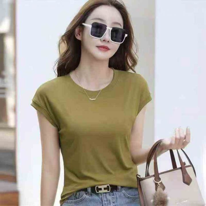350件冰丝螺纹靓妹T,高弹力,单款单色芥黄色,独立包...