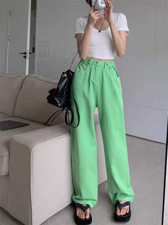 春夏季新款网红复古可调节洗水棉彩色直筒阔腿牛仔裤,独立包装带腰卡带防伪...