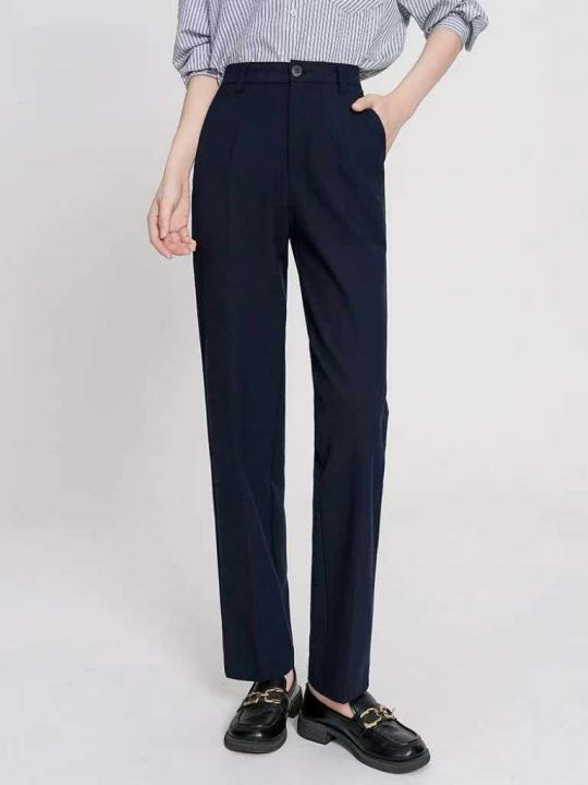 春季新款高腰职业正装通勤休闲藏青色直筒西装裤,独立...