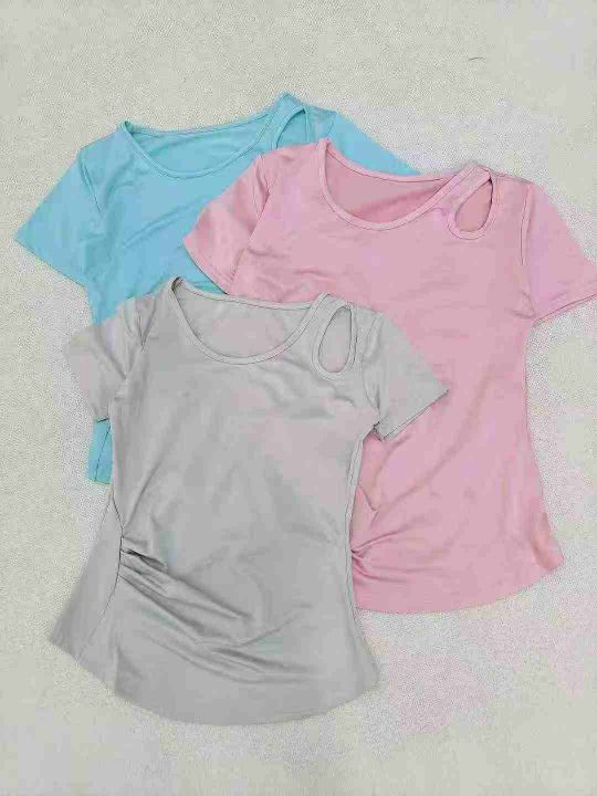 310件镂空性感锁骨褶皱辣妹T,单款3色,面料柔软有弹...