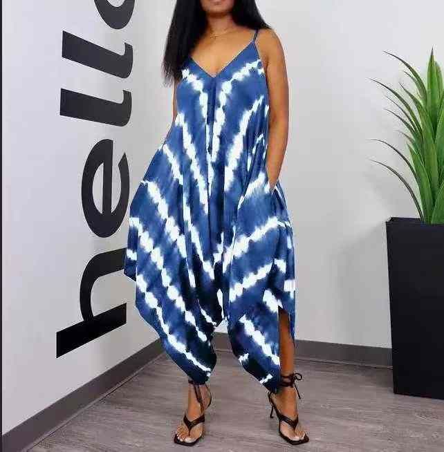 欧美爆款印花,时尚宽松吊带连体裤 ,整款五色,数量:247件,码数:s-2XL,品质好,拉链式独立包装。