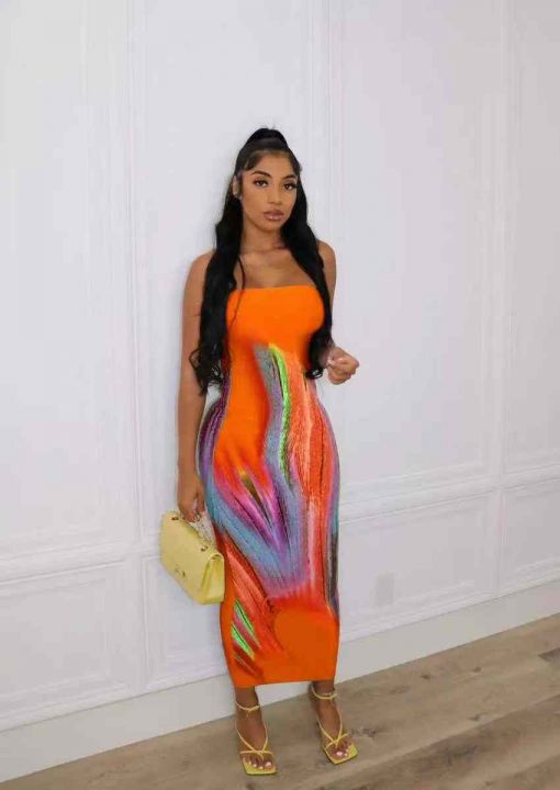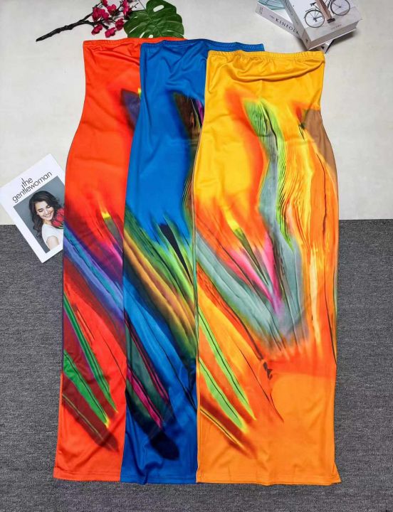 欧美跨境时尚女装印花露肩裹胸礼服长连衣裙,整款三色,数量:698件,码数:S-2xL,品质好,拉链式独立包装。