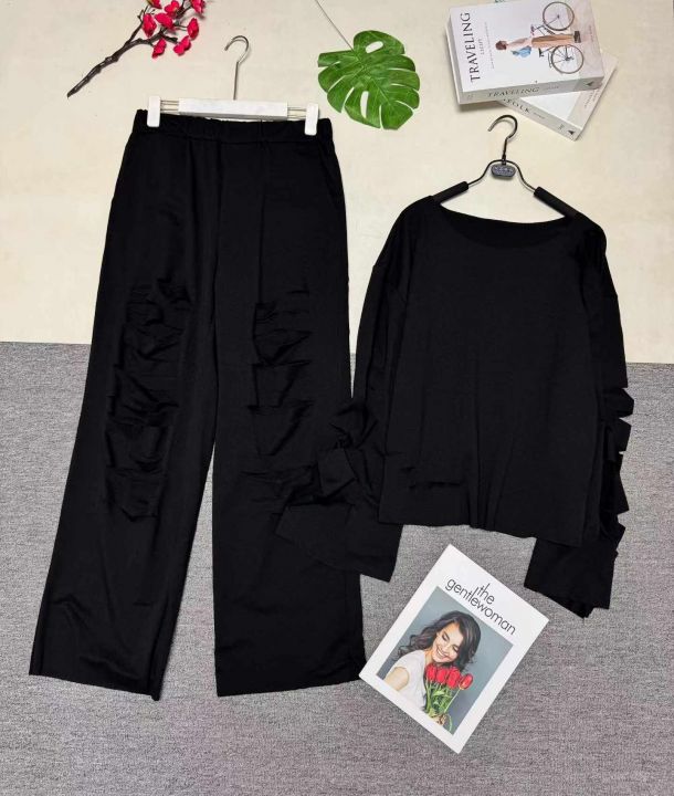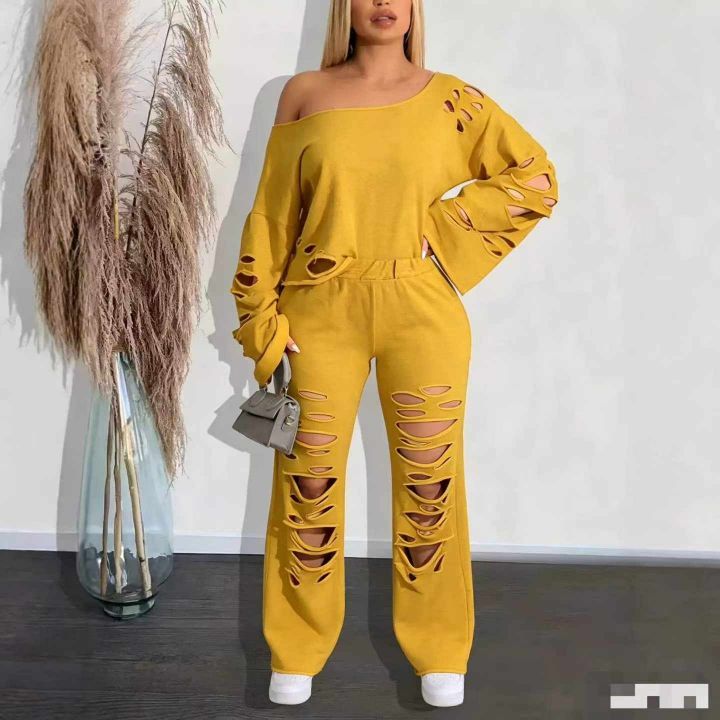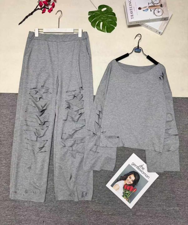 8.9清款号:6120#欧美风潮流破洞卫衣两件套套装,整款...