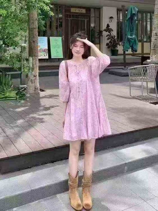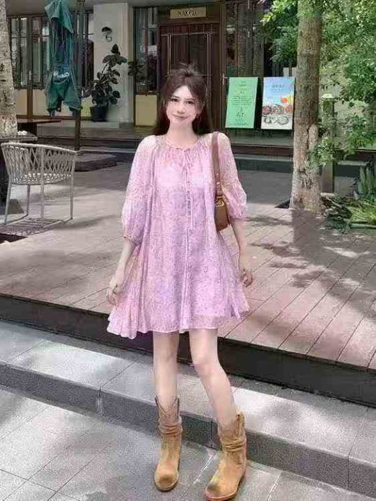 ❄️法式气质小个子粉色碎花雪纺连衣裙海边度假显瘦连衣裙,单款单色,品质可入实体店,独立包装带吊牌,码数S-XL,数量90件,全清9.8元秒