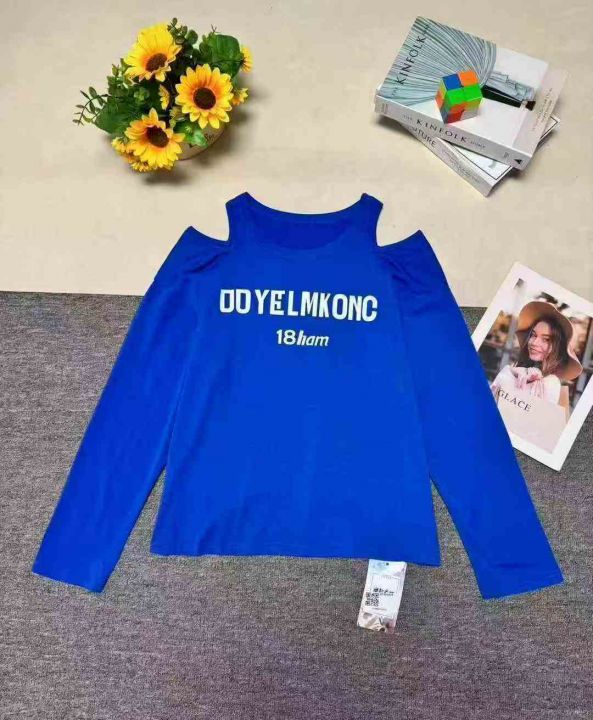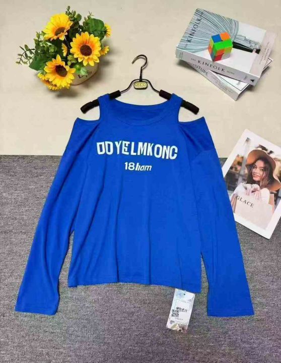❄️秋季设计感网红款露肩镂空字母印花长袖上衣休闲打底衫,单款单色,品质好,有独立包装带吊牌,码数S- XL,数量450件,全清6.8元秒