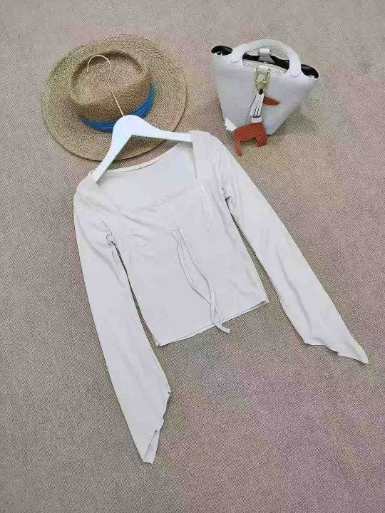 [月亮]:纯欲系带不规则袖口辣妹长袖上衣