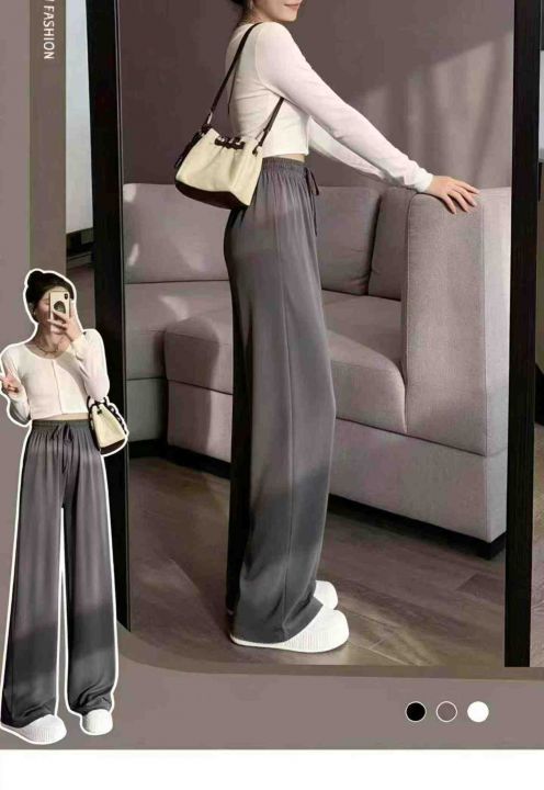 春夏季新款高腰冰丝垂感宽松直筒窄版阔腿休闲裤,独立...