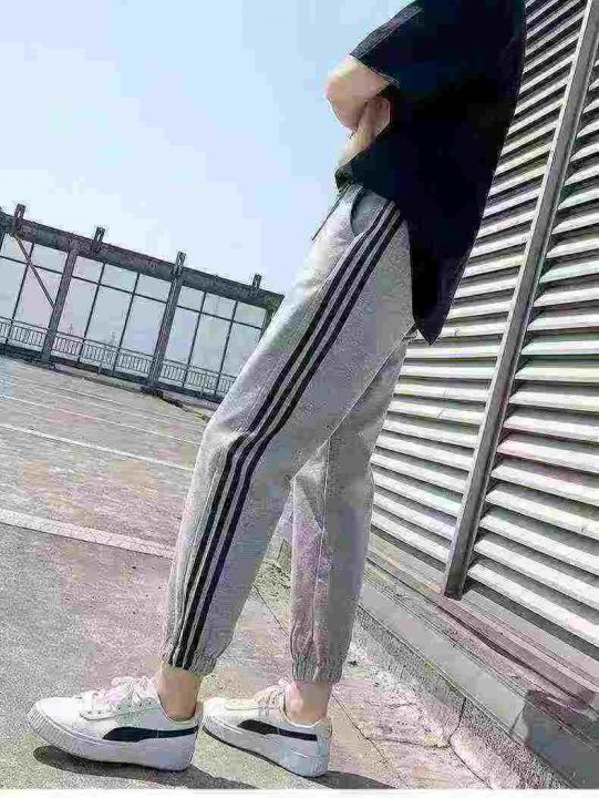 60件三条杠束脚卫裤男女春夏新款宽松运动裤直筒休闲哈伦裤 单款两色,码数1-6(S-3XL)独立包装。