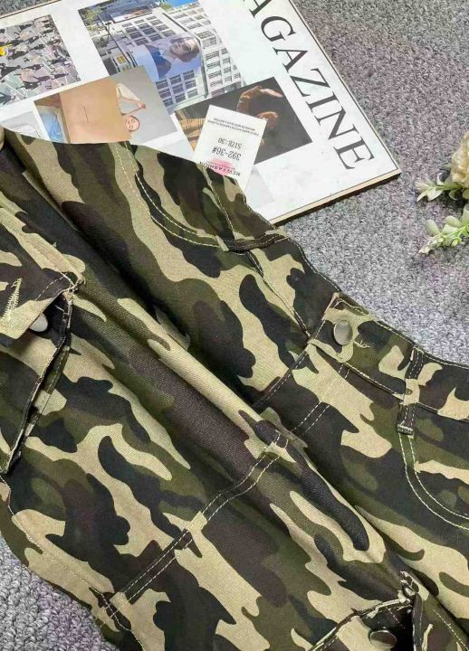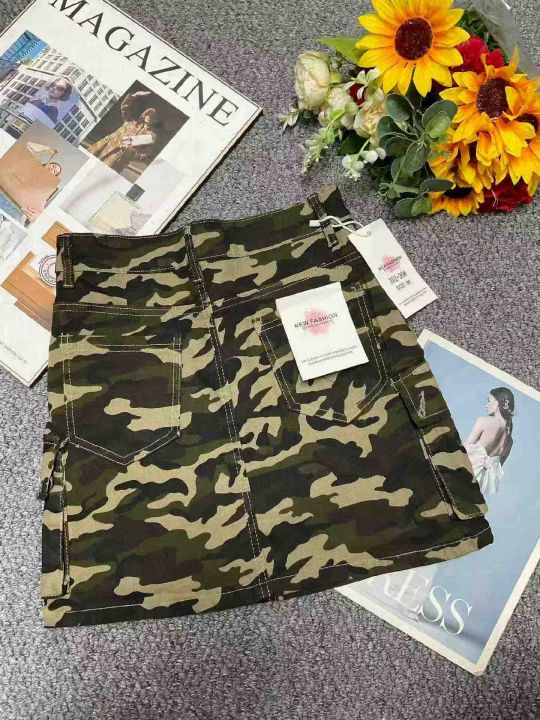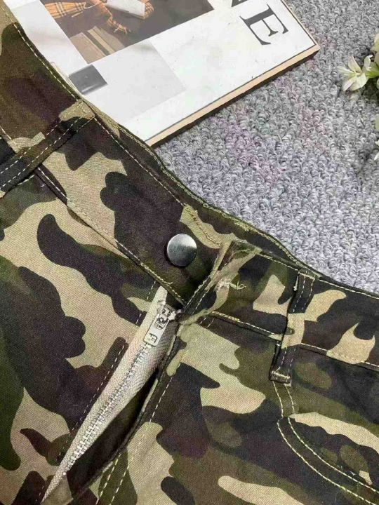 夏季新款品牌外贸原单美式高弹力迷彩多袋工装牛仔短裙...