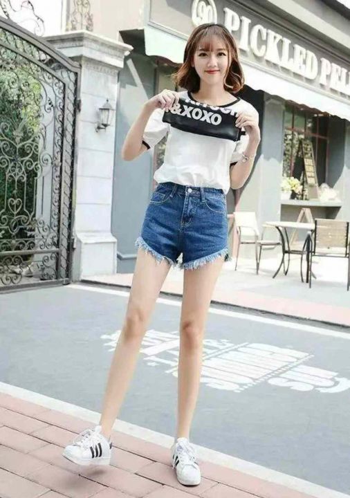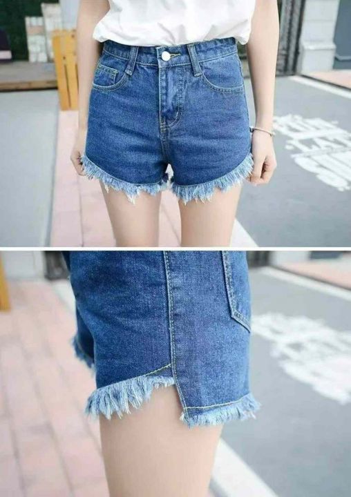 夏季新款设计款毛边洗水棉牛仔短裤,独立包装带腰卡,...