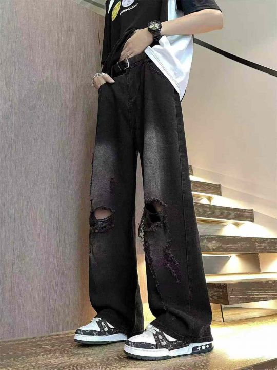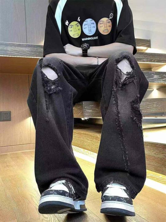 春夏季新款男美式vibe高街百搭黑色痞帅复古阔腿潮牌宽...