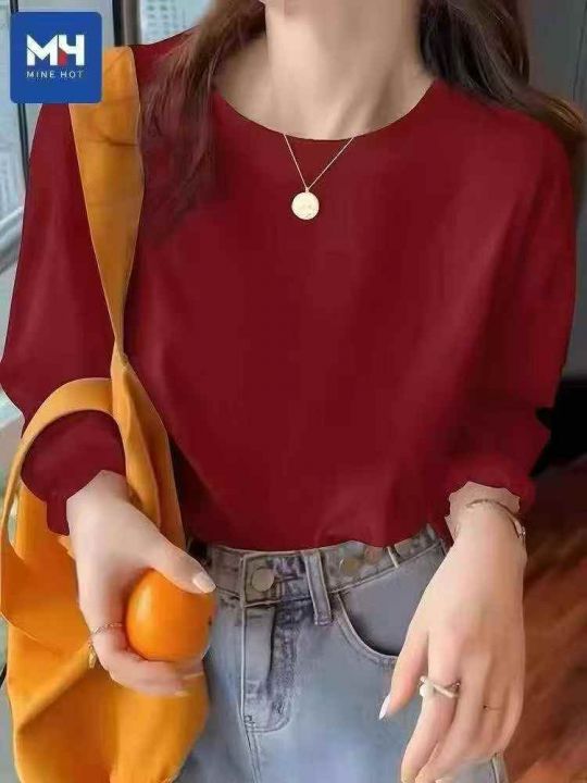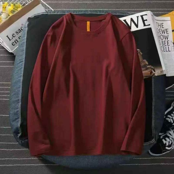 男女同款纯色长袖T恤☕️600件全清5.8元分货6.8元。码数Xs到3xl,独立包装,单款单色 ,本命年酒红色纯色长袖T恤男春秋新款圆领纯棉宽松长袖打底衫男