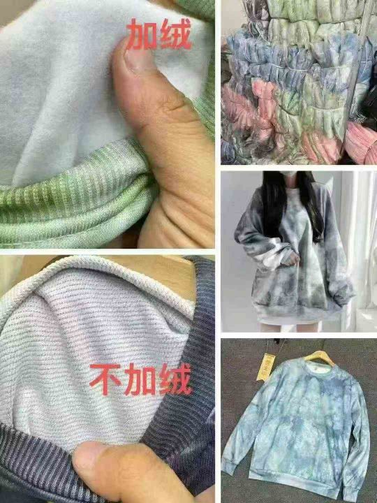 700件左右,网店下架一批发\'男女装扎染卫衣,独立包装,码数:M-3XL,一半加绒一半不加绒,全清6.8元,分货➕1