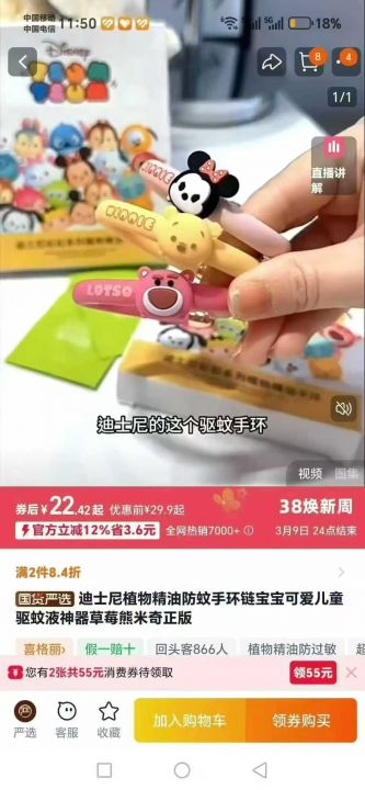迪士尼系列驱蚊手环带标6000pcs