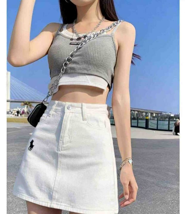 捡漏款,夏季新款网红复古设计款白色牛仔短裙,独立包...