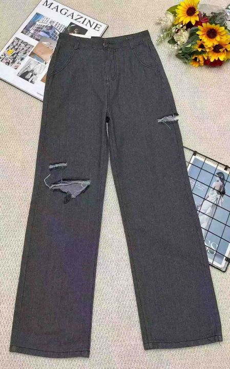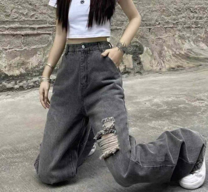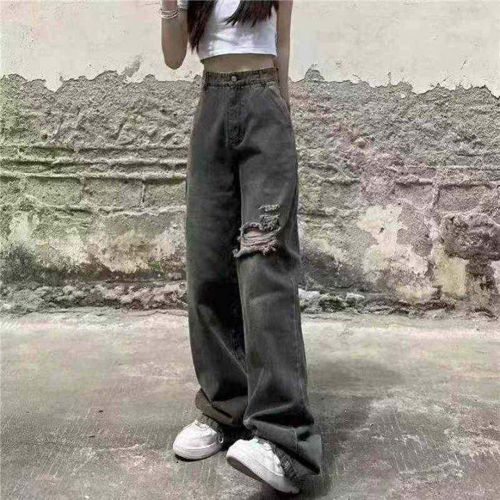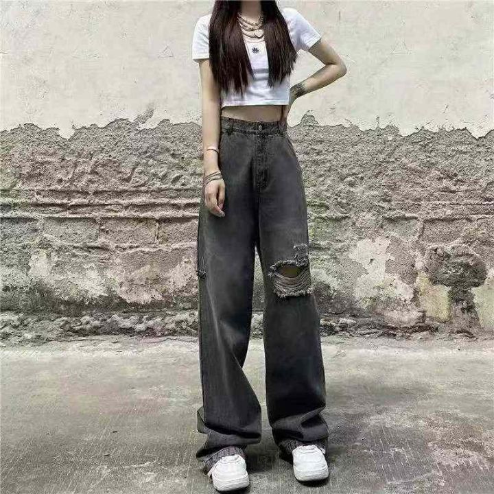 春夏季新款网红复古洗水棉破洞牛仔直筒阔腿裤,独立包...