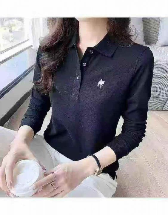 ☕️高品质品牌好货纯棉女装翻领POLO刺绣长袖T恤3110...
