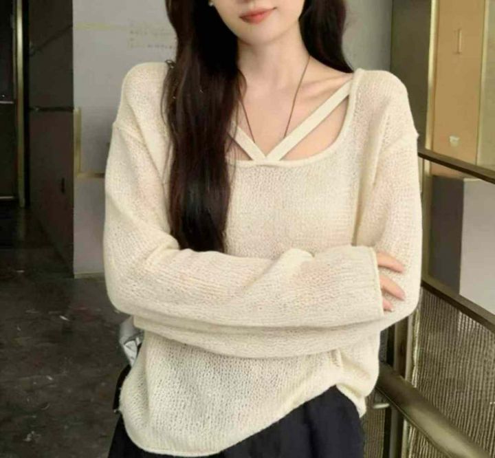 春夏季新款网红镂空设计款宽松百搭长袖针织衫,独立包装,均码面料柔软舒适...