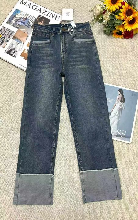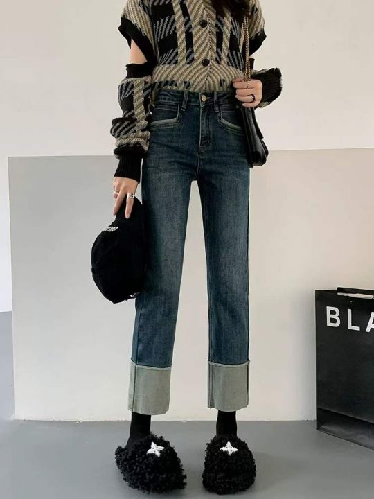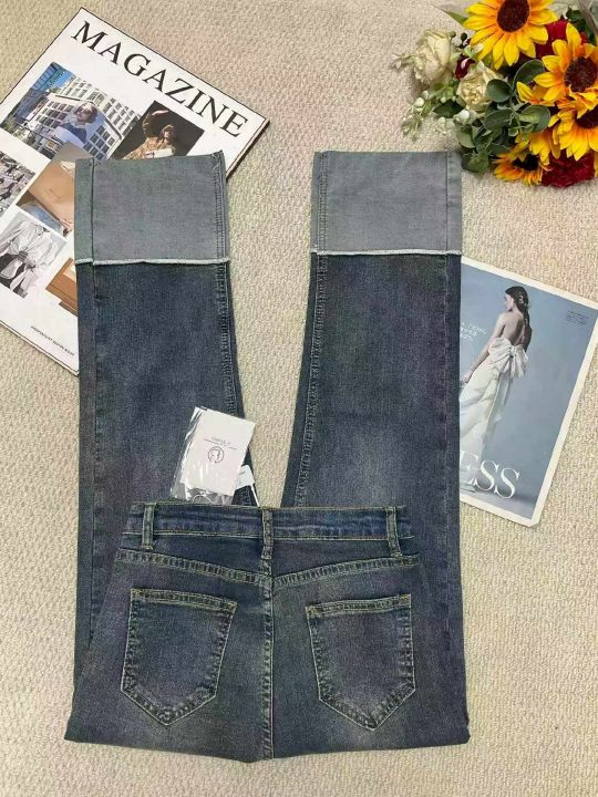 春夏季新款高弹力网红复古设计款直筒烟管牛仔裤,独立...