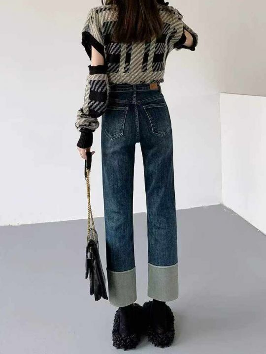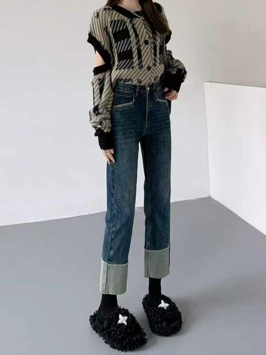 春夏季新款高弹力网红复古设计款直筒烟管牛仔裤,独立...