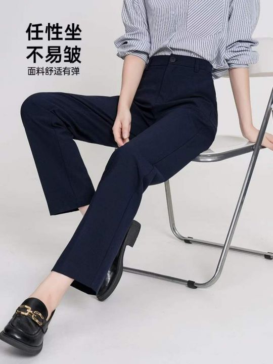 春季新款高腰职业正装通勤休闲藏青色直筒西装裤,独立...