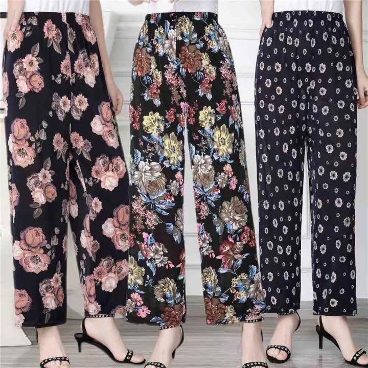 10000条\'妈妈冰丝长裤女宽松加大加肥休闲奶奶花裤子中老年阔腿裤,多色,均码,100/200起+0.5,货号001#30