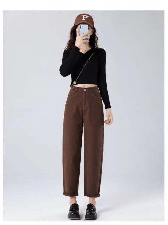 咖色牛仔垮裤通勤直筒裤女新款高腰显瘦窄版阔腿长裤子百搭款240条全清11.8元,26-30码数,正品独立包装[庆祝][庆祝][庆祝]
