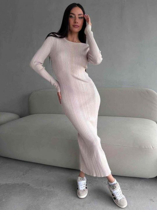 捡漏款,春夏季新款欧美纯色圆领坑条弹力修身显瘦长款针织毛衣连衣裙,长袖为主,独立包装,均码面料柔软舒适弹力大,66件,全清9.9元超低价秒杀!