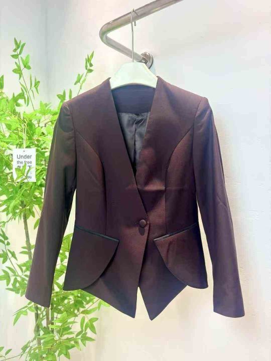235件左右轻奢气质无领深咖色不规则下摆设计感西装,品质做工毋庸置疑,尺码S-L,独立包装,福利秒杀价7.5 不分货