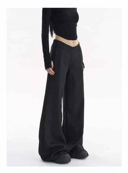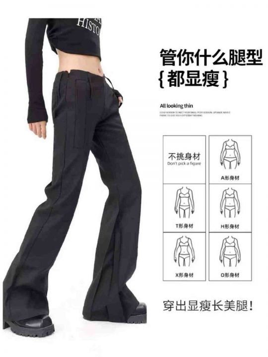 春季新款低腰垂感阔腿休闲拖地喇叭马蹄西裤,独立包装...