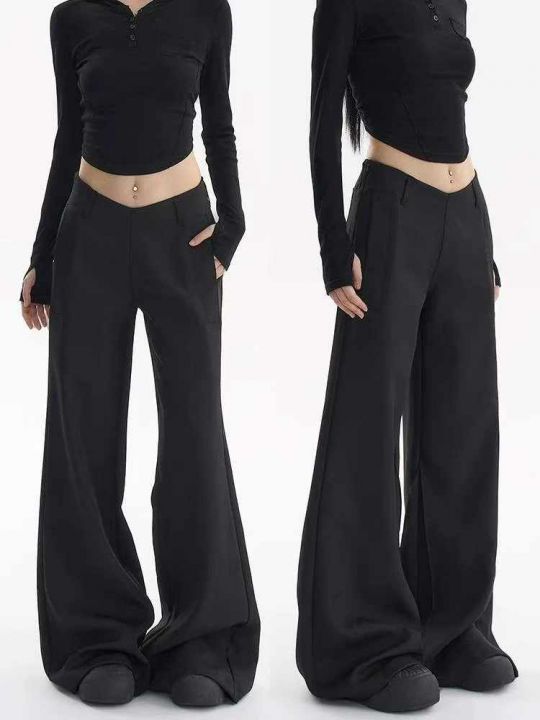 春季新款低腰垂感阔腿休闲拖地喇叭马蹄西裤,独立包装...