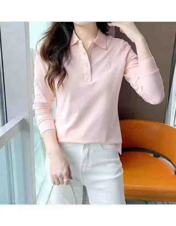 ☕️高品质品牌好货纯棉女装翻领POLO刺绣长袖T恤3110...