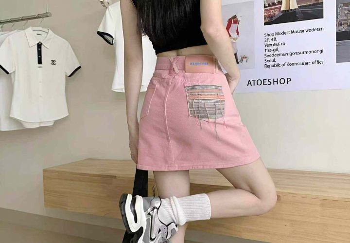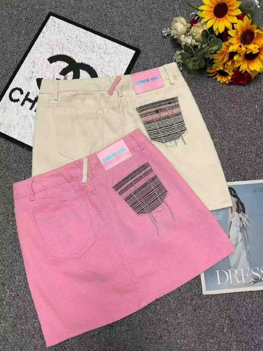 夏季新款复古刺绣撞色后袋设计款牛仔半身短裙,独立包...