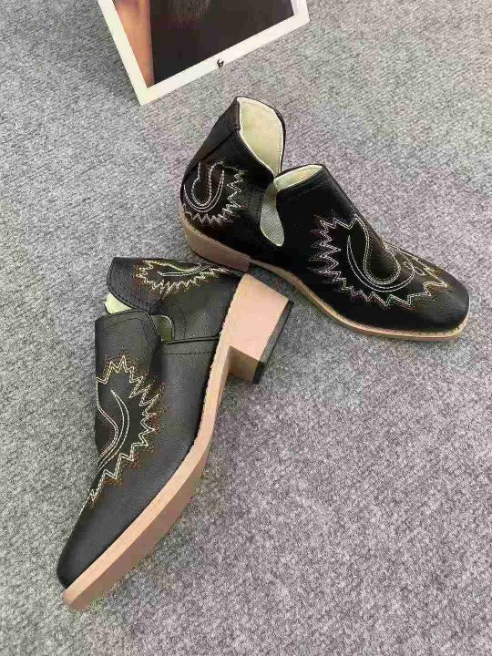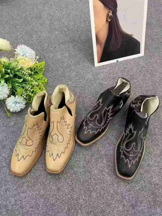 100双刺绣粗跟时尚皮质短靴,品质好,款式新颖时尚,36码一41码,独立包装,全清3.9